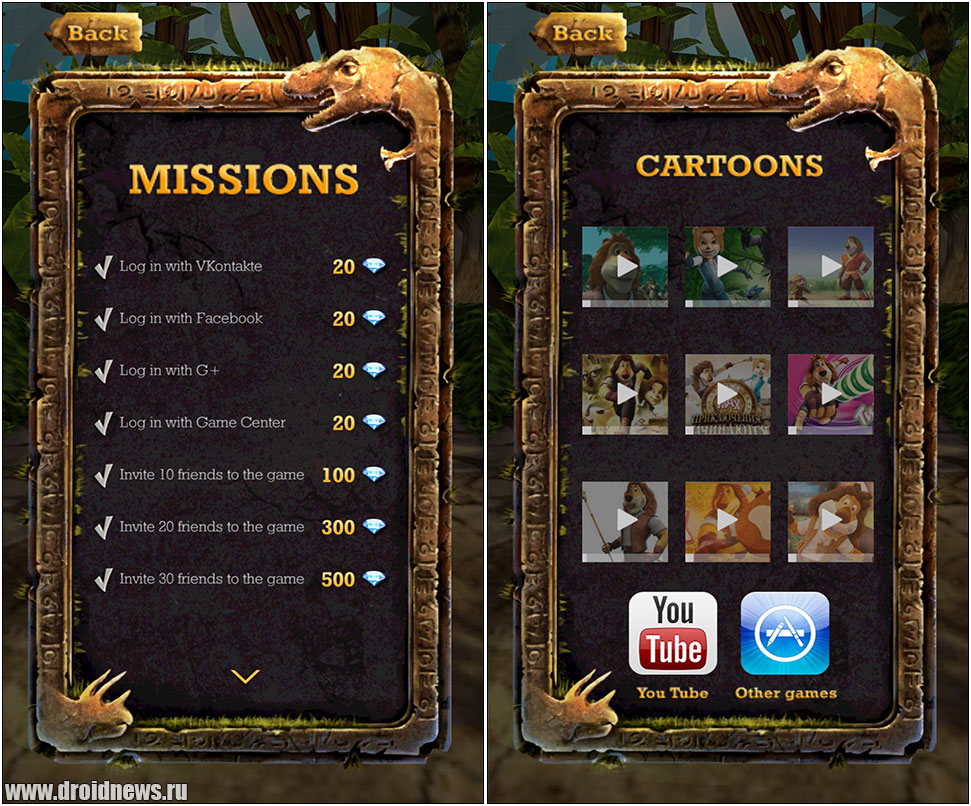 Вначале, как и в любом раннере выбираем героя. Как было замечено выше, это лев Макс или львица Лина. Начинаем первый этап и сразу видим яркую насыщенную цветовыми колоритами графику. Затем привыкаем, что для успешного прохождения игры нам потребуется быстрая скорость реакции и анализа происходящего на экране.