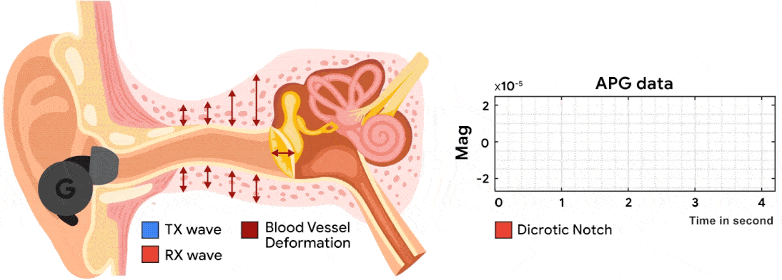 Технология получила название «Аудиоплетизмография» (APG). Заключается в том, что наушник посылает ультразвуковой сигнал, а затем получает его обратно, фиксируя встроенными микрофонами. Затем путём вычислений высчитываются данные сердечных сокращений. Google отмечает, что объем слухового прохода немного меняется с каждым ударом сердца, благодаря деформации кровеносных сосудов. Различные ультразвуковые исследования уже давно успешно применяются в медицине.