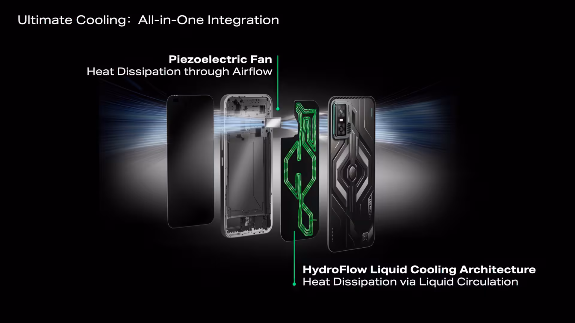 Дополняет картину безлопастная технология обдува. Вместо привычного пропеллера здесь установлена вибрирующая пластина толщиной 0,1 мм. Частота колебаний составляет 25 000 Гц, что создает направленный поток воздуха под высоким давлением. Такое решение работает почти бесшумно, так как в конструкции отсутствуют подшипники и трущиеся детали. Аналогичные попытки внедрения активного охлаждения ранее предпринимала компания Nubia в линейке RedMagic, однако там использовались классические миниатюрные турбины, склонные к накоплению пыли.